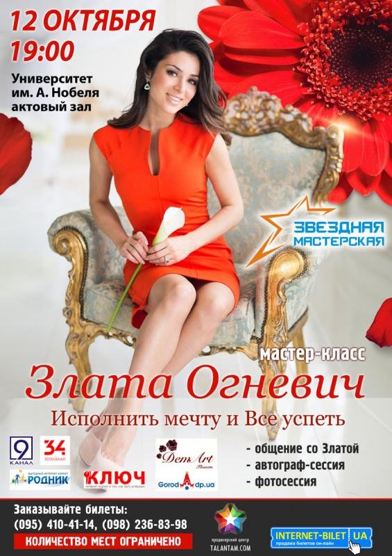 Успешная украинская певица Злата Огневич впервые в Днепре с авторским мастер-классом «Исполнить мечту и Все успеть».