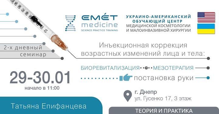 Приглашаем Вас на 2-х дневный семинар по теории и отработке навыков техник мезотерапии и биоревитализации.«Инъекционная коррекция возрастных изменений лица и тела: мезотерапия + биоревитализация. Постановка руки».