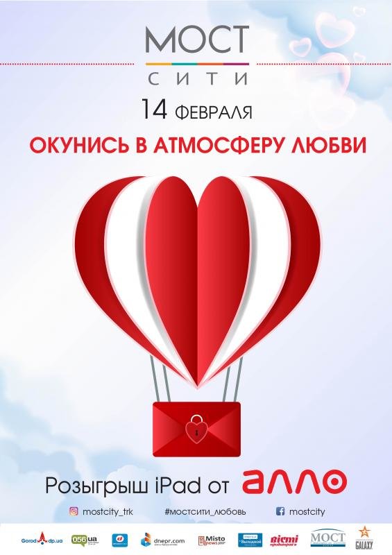 А еще 14 февраля в МОСТ-сити можно будет устроить "Свадьбу за 1 день", принять участие в конкурсах и мастер-классах. В финале вечера состоится розыгрыш iPad от сети магазинов АЛЛО.