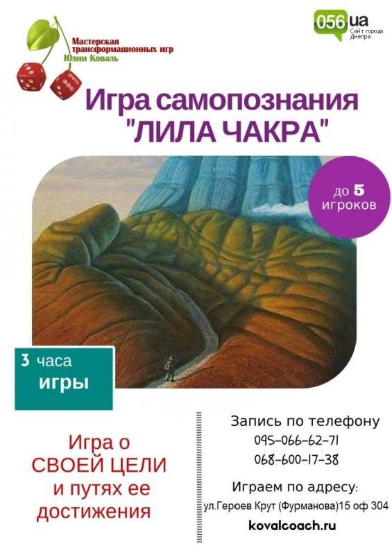 Лила Чакра» - это игра на любую поставленную цель. Игровое поле – поле жизни. Откровенный разговор со своим подсознанием, соприкосновение с сокровенными тайнами своей души. Движемся по полю игры, сквозь свои убеждения, установки, страхи, ресурсы, сомнения – прямо к Своей цели.