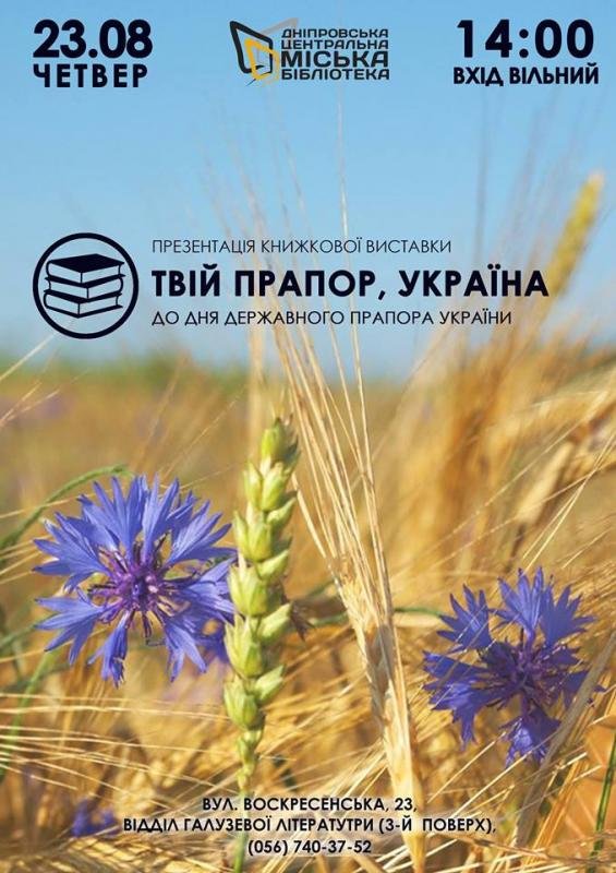 Днепровская Центральная городская библиотека приглашает ко Дню Государственного Флага Украины на презентацию книжной выставки «Твой флаг, Украина».