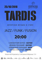 Музыкальная группа TARDIS, образовалась в феврале 2018 года. В её состав входят как уже известные, так и талантливые молодые музыканты, только начинающие свою музыкальную деятельность. Репертуар коллектива состоит в основном из авторских произведений рождённых в содружестве, но есть так же известные произведения джазовой классики. Основное достоинство джазового искусства, по мнению участников ансамбля, состоит в музыкальной импровизации. Поэтому даже тех кто уже был на концерте TARDIS, ожидает масса новых, музыкальных находок. Всех кто любит слушать живую музыку, ждём 25 октября, в 20:00 на концерте, в клубе "Неизвестный Петровский".