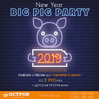 Яркая, душевная Новогодняя ночь с Островом! Встречаем 2019 год «Свинки» с размахом. Гостей ожидает изысканный праздничный банкет, насыщенная программа с аккордеонистами, шоу балетом, кавер бэндом «INSIDE», дуэтом ведущих, dj, и мега фаер шоу! А еще отдельная анимационная вечеринка для маленьких гостей!