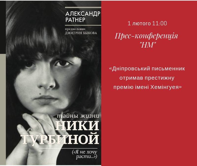 1 февраля в 11:00 в информационном центре «Наш Город» по адресу: ул. Старокозацкая, 58 (2-й этаж) пройдет пресс-конференция на тему: «Днепровский писатель получил престижную премию имени Хемингуэя».