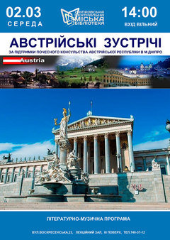 2 марта в 14:00 приглашаем в лекционный зал Днепровской Центральной городской библиотеки (3-й этаж) на литературно-музыкальный вечер "Австрийские встречи".