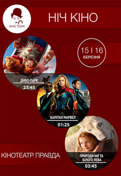 Каждую пятницу и субботу, кинотеатр "Правда" сети «КИНО ТЕМА» приглашают вас на ночные показы трех фильмов по цене одного.