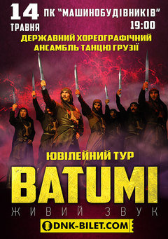 Хореографический ансамбль танца Грузии "Батуми", УКРАИНСКИЙ ТУР КОТОРОГО ПРОЙДЕТ В мае имеет свой индивидуальный стиль, оригинальность, высокий артистизм и потрясающую технику танца. Вас ждет настоящее европейское шоу: на сцене пятьдесят артистов в роскошных эксклюзивных костюмах, живая музыка собственного оркестра, кавказские кинжалы и грузинские палаши, которые артисты виртуозно используют в танцах.