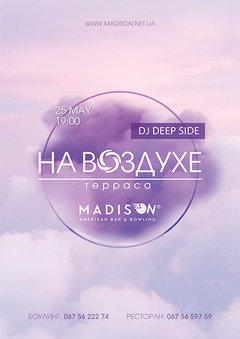 С вами весь вечер DJ Deep Side, авторские коктейли и дымные кальяны.