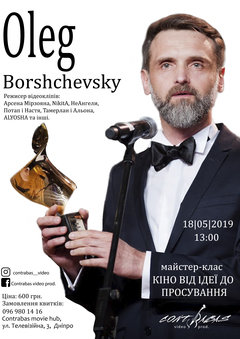 18 мая 2019 с 13.00 до 18:00 вы из первых уст узнаете как создают настоящее кино. От идеи до дистрибуции. Автор мастер-класса и спикер - известный украинский кинорежиссер Олег Борщевский.