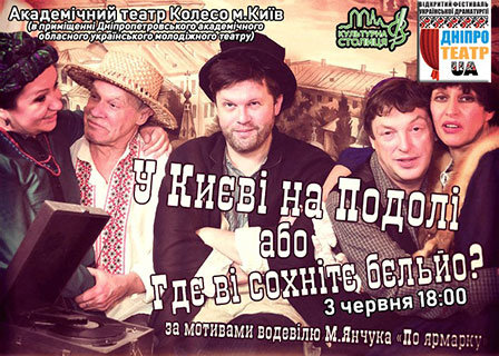 Академический театр Колесо Киев в рамках фестиваля современной украинской драматургии ДНИПРО.ТЕАТР.UA. приглашает на городскую байку с песнями, танцами и цимисом по мотивам водевиля М.Янчук «По ярмарки»