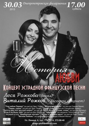 У програмі: музика французьких композиторів М. Лєграна, П. Моріа, Дж. Дассена, пісні з репертуару Е. Піаф, М. Матьє, Ш. Азнавура.