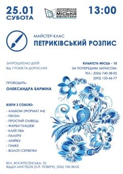 Днепровская Центральная городская библиотека приглашает всех желающих на мастер-класс по петриковской росписи.