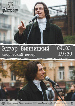 На творческий вечер 4 марта в «Неизвестный Петровский» мы пригласили поэта, спикера ТЕД, участника проекта «Голос» и музыканта Эдгара Винницкого. Автор будет читать собственные стихи и говорить о творчестве.