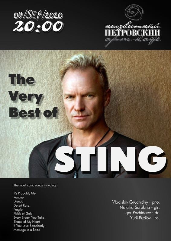 В этом концерте прозвучат песни выдающегося британского музыканта, бенд-лидера, автора многочисленных хитов Гордон Мэттью Томас Самнера, известного всем нам под прозвищем Стинг, от старых песен времен The Police, и до самых новых: It's Probably Me, Roxane, Dienda, Desert Rose, Fragile, Fields of Gold, Every Breath You Take, Shape of My Heart, If You Love Somebody.