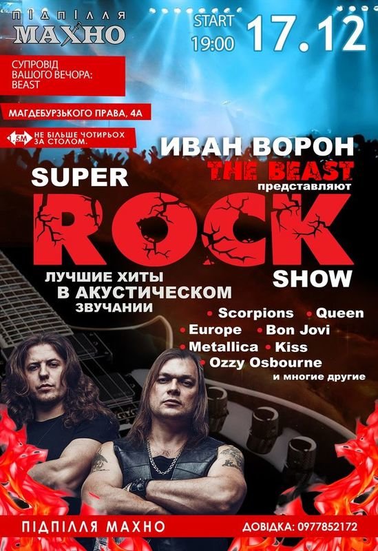Нова програма від BEAST !!! Тільки кращі зарубіжні рок балади від кращого рок вокалу України учасника шоу ГОЛОС Івана Ворона і Iron Max. Цей концерт не залишить байдужим нікого !!! Буде дуже жарко !!!)