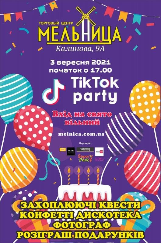 Дорогие жители и гости города! 3 сентября, Торговый Центр «Мельница», в честь своего дня рождения, проведет для вас грандиозное шоу "ТИК ТOК party" с кучей подарков и развлекательных программ! Вас ждут: