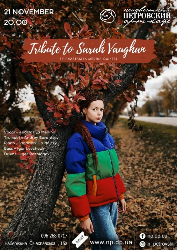 Концерт посвящен творчеству одной из самых значительных вокалисток в джазовой музыке Саре Воан, ее голос был инструментом, она была одной из двух вокалисток, звучавших на уровне с Чарли Паркером и Диззи Гиллеспи. Объемный бархатный звук и сумасшедшая техника.