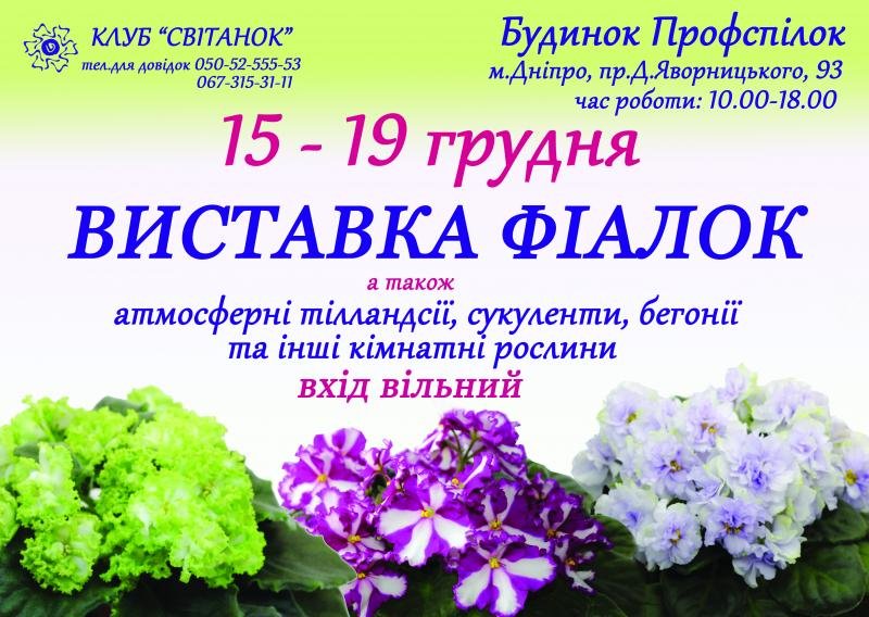 Приглашаем посетить выставку фиалок, атмосферных тилландсий, бегоний, суккулентов и других комнатных растений