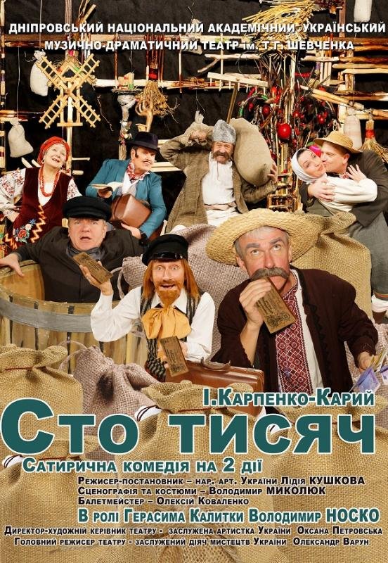 «Сто тысяч» - известная пьеса классика Ивана Карпенко-Карого, которая была написана в 1889 году. Жанр пьесы «Сто тысяч» - сатирическая комедия характеров. В произведении высмеивается чрезмерная жажда обогащения.