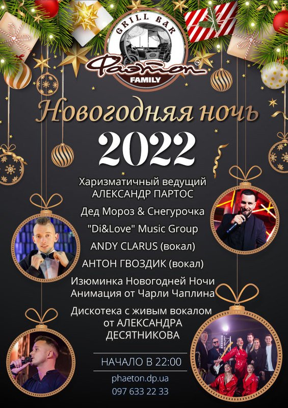 Каждый человек предвкушает в эту ночь что-то светлое, яркое, запоминающееся, необычное и волшебное. Именно поэтому мы приглашаем провести ее с гриль-баром «Фаэтон», дабы отвлечь Вас от суетливых трапез приготовлений и новогодней суеты.