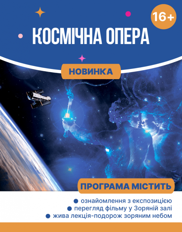 «Космічна опера» — це унікальна мистецька, філософська і наукова подорож до незвіданого та безмежного Всесвіту! На інопланетному космічному кораблі у супроводі штучного інтелекту ви зможете відірватись від Землі та дослідити планети Сонячної системи, а також простір за її межами.