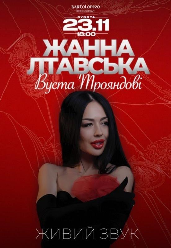 Жанна Лтавська – українська співачка, авторка, виконавиця хітів: «Рускій врєдітель», «В яблуневім цвіті», «Ромашки, троянди, метелики», «Повертайся додому» та інших, що відомі не тільки в Україні, а й за її межами! Цікава, різноманітна концертна програма не залишить вас байдужими. Ви почуєте ліричні й запальні, патріотичні пісні та пісні про вічне - кохання!