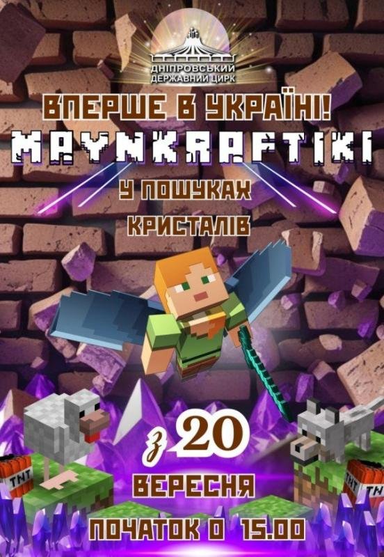Вперше на манежі Дніпровського Цирку! Прем’єра сезону — вистава, якої ще ніхто не бачив! «Майнкрафтики в пошуках кристалів».