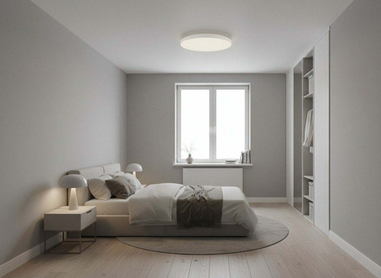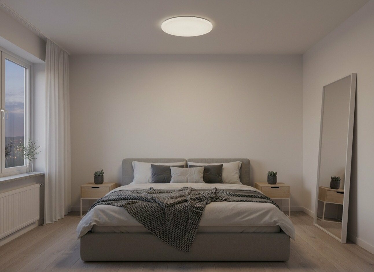 Не у всіх є простора спальня з високими стелями. Для компактних приміщень потрібні відповідні рішення - пласкі світильники, що не "з'їдають" висоту.
