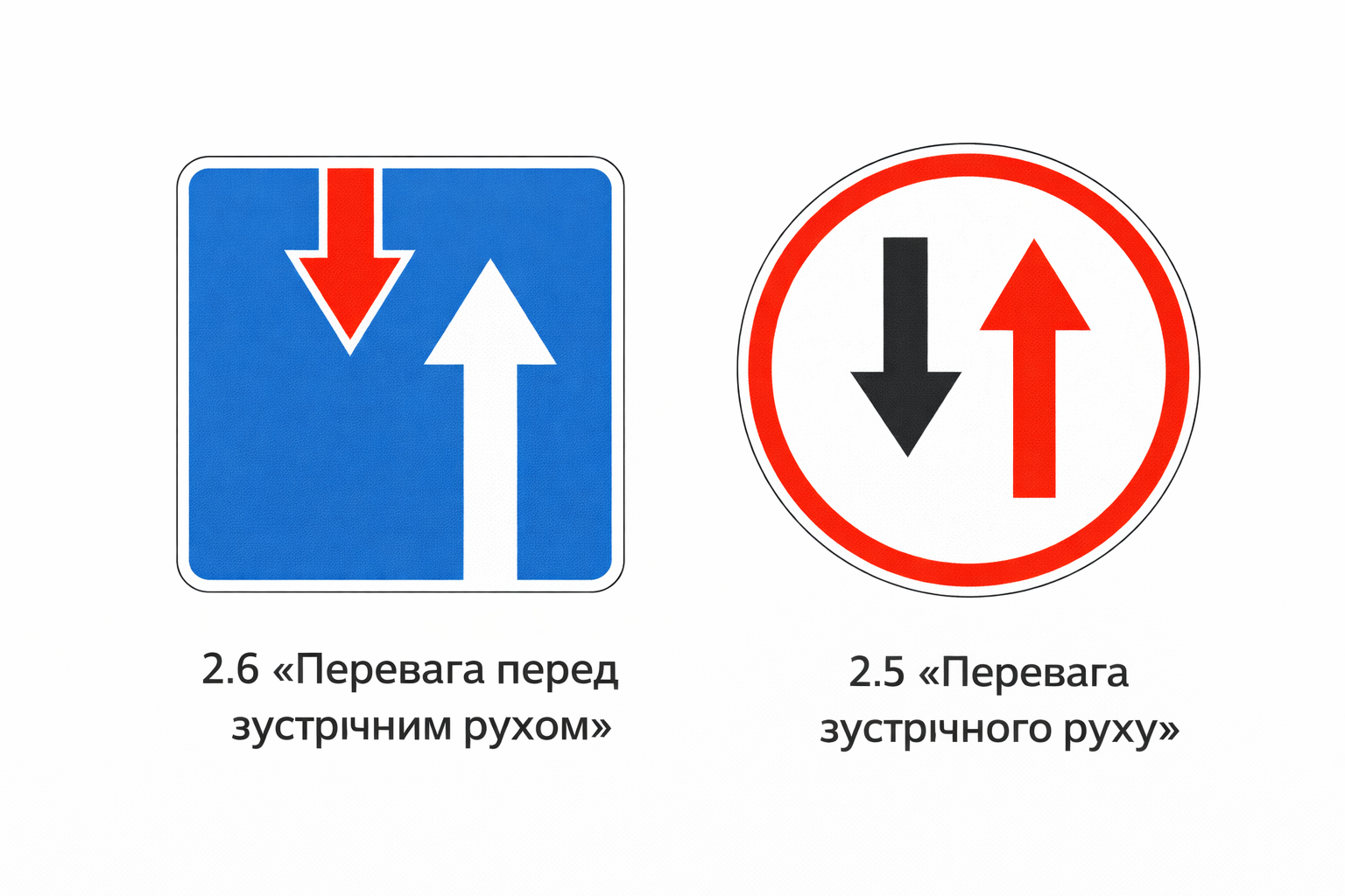 Знаки 2.5 та 2.6: перевага на вузьких ділянках доріг