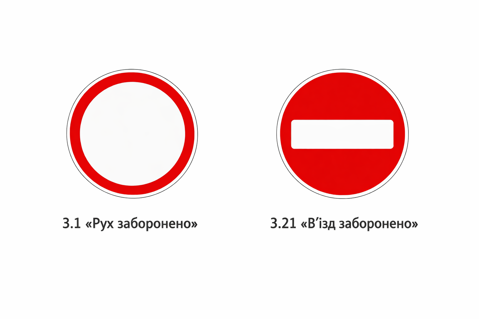 3.1 «Рух заборонено» та 3.21 «В’їзд заборонено»