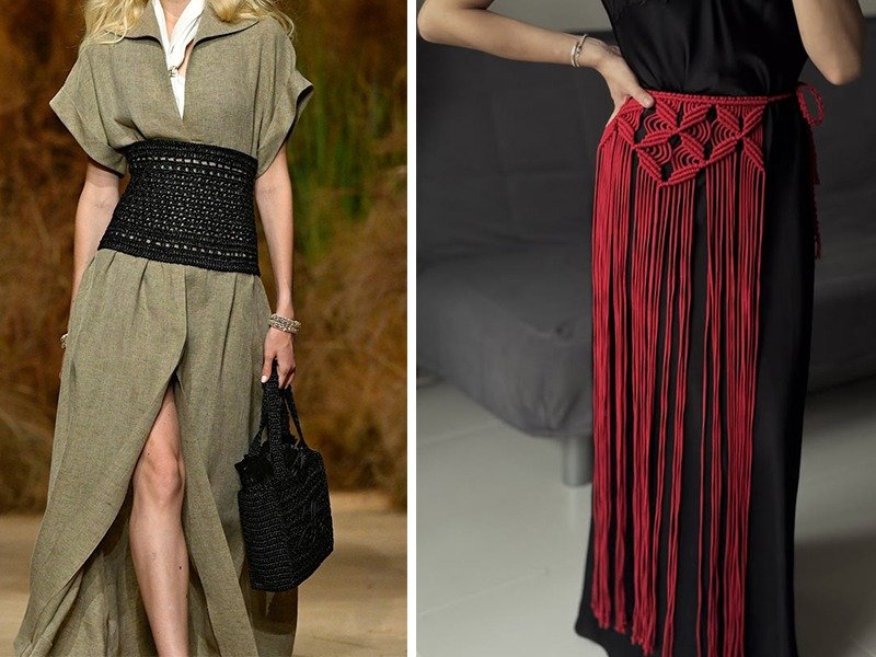 - Пояси-корсети: Широкі плетені пояси, які ідеально підкреслюють талію на легких сукнях.