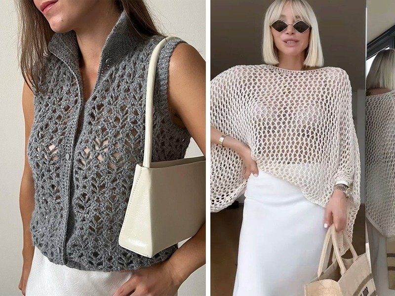 Якщо минулого року ми закутувалися в оверсайз-худі, то цей сезон вимагає повітря. Головний хіт — сітка. Вона всюди: від пляжних тунік до елегантних джемперів, які одягають поверх базових топів чи суконь-комбінацій.