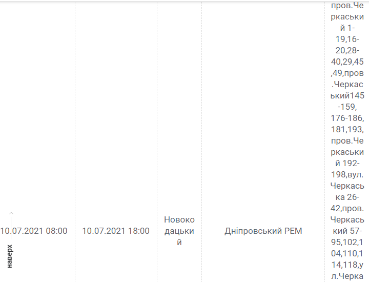 Днепр, 10 июля, график отключения электроэнергии: