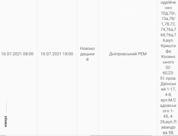 По каким адресам и в какое время завтра в Днепре не будет света: график на 10 июля