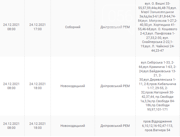 Завтра в Днепре по причине выполнения плановых ремонтно-восстановительных работ на сетях и подстанциях будут обесточены десятки домов.