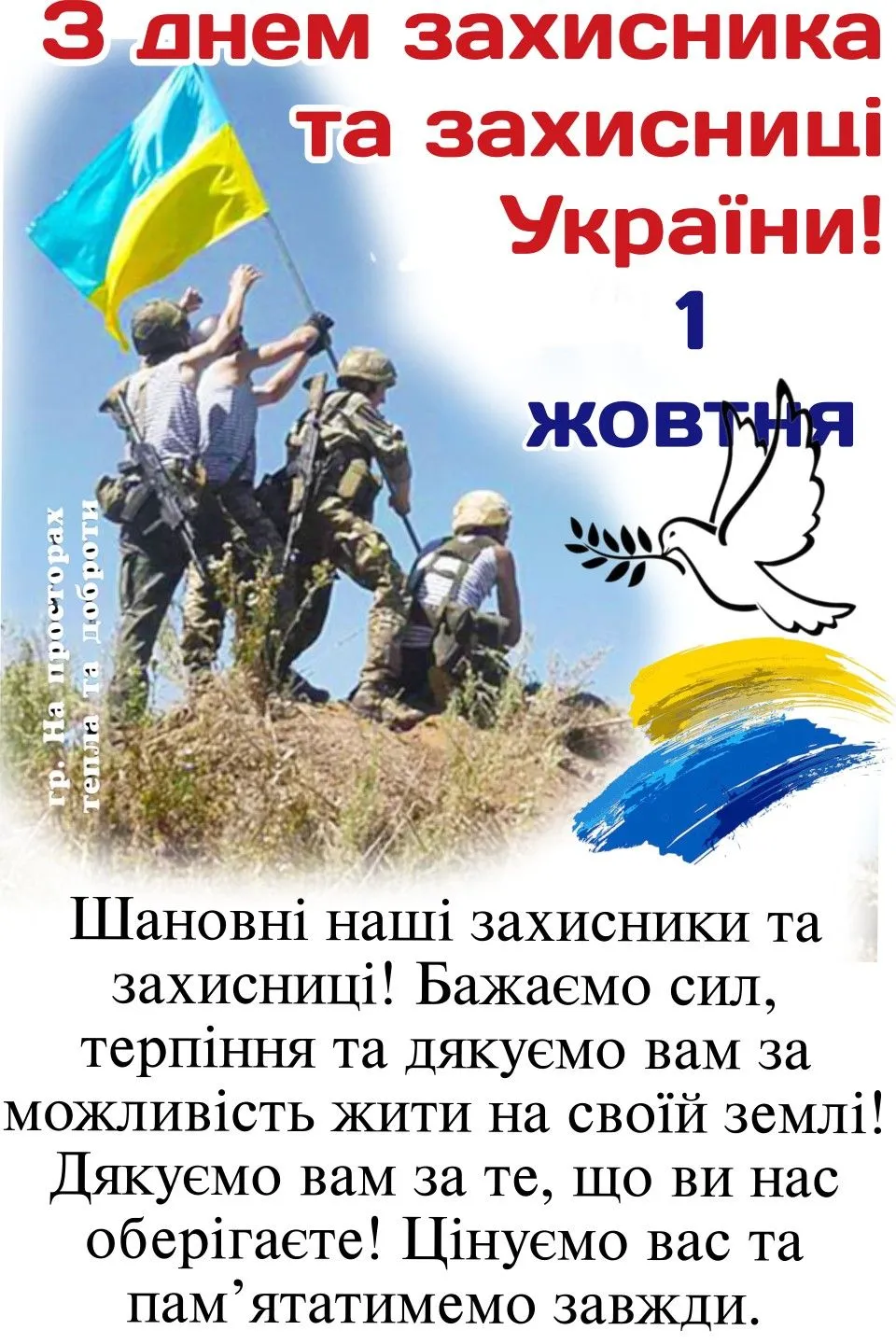 1 жовтня відзначаємо День Захисників і Захисниць України – день, коли вся країна з особливою вдячністю і шаною вітає своїх оборонців.