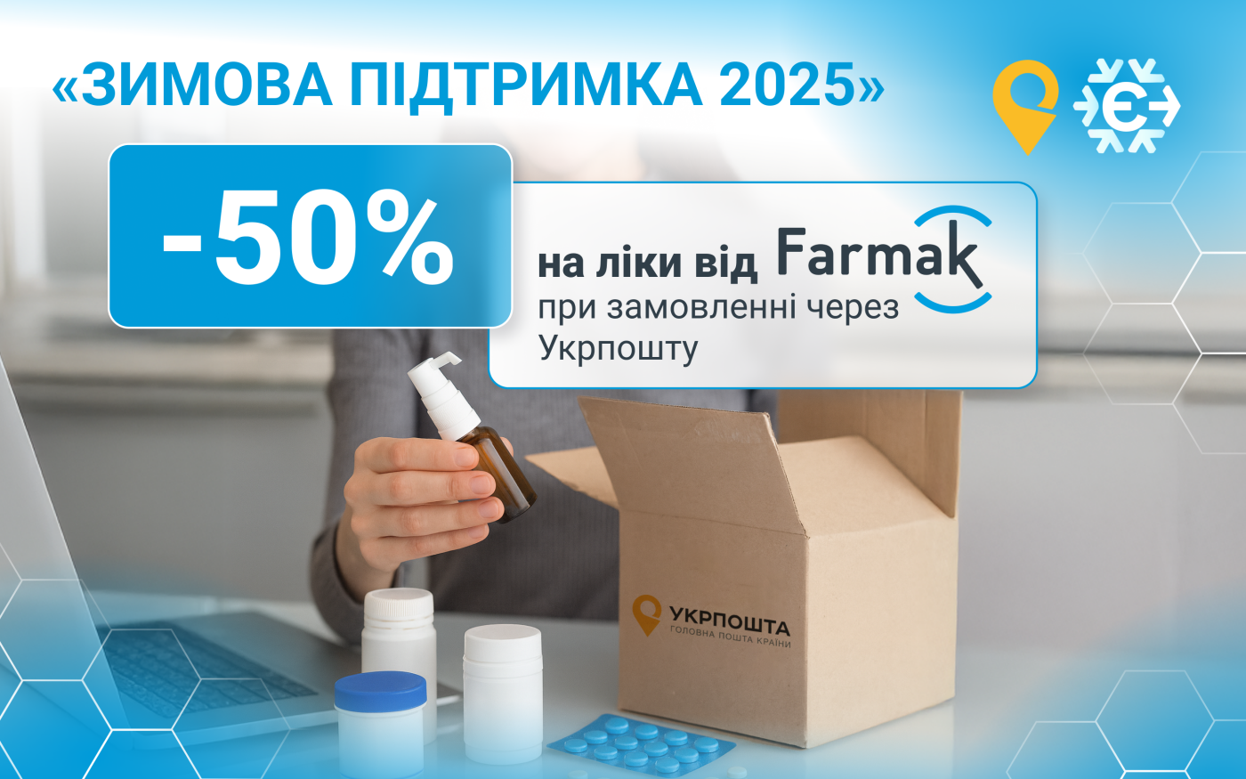 • Farmak надав 50% знижку на ліки з «Зимової підтримки 2025» при замовленні через Укрпошту