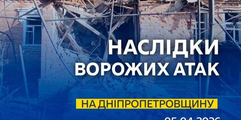 Дніпропетровщина. Ситуація на вечір 5 квітня. Майже 50 разів протягом дня ворог атакував два райони області артилерією та безпілотниками. Одна людина загинула, ще одна дістала поранень. Про це повідомив голова Дніпропетровської військової адміністрації Олександр Ганжа. У Криворізькому районі під ударом FPV-дрону була Зеленодольська громада", - йдеться в повідомленні. На Нікопольщині потерпали райцентр, Марганецька, Червоногригорівська та Покровська громади...