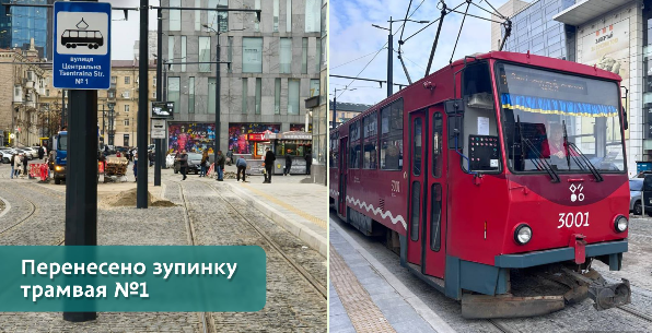 Відсьогодні у Дніпрі змінюється зупинка трамвая №1. З 27 листопада перенесено зупинку трамвая №1 на вул. Центральній у напрямку Університету науки і технологій. Тепер вона біля ЦУМу, з боку входу до McDonald’s. Зміни пов’язані із завершенням облаштування інклюзивної посадкової платформи, де і буде розташовуватися постійна зупинка. "Роботи з відновлення тротуарного покриття після ремонту трамвайної колії на вул. Центральній ще тривають. Повне завершення зап...