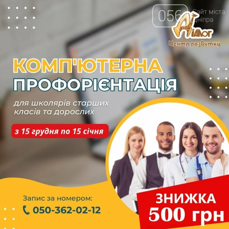 ?У Центрі розвитку «ДІАЛОГ» з 15 грудня до 15 січня проходить щорічна акція «Комп’ютерна профорієнтація для учнів 7-11 класів зі знижкою 500грн