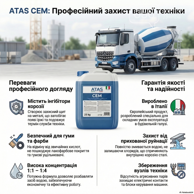 Змивка бетону і цементу для міксерів, бетонозмішувачів і ін.техніки CEM Atas 10 кг (Італія)