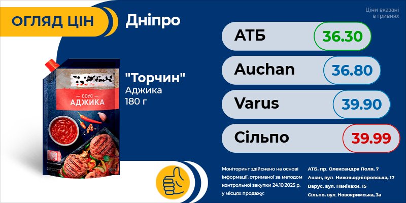 Тільки актуальна інформація про всі ціни на продукти в Дніпрі. Регулярні оновлення про акції та знижки швидко зорієнтують вас і допоможуть зробити правильний вибір.