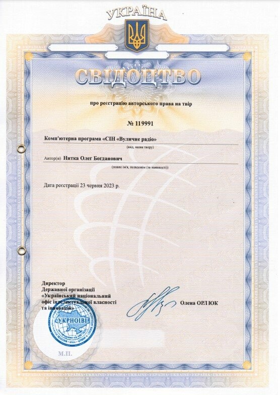 Комп’ютерна програма Система Інформування Населення (СІН) «Вуличне радіо» створена Українськими програмістами котра забезпечує повноцінне функціонування і роботу системи сповіщення «Вуличне радіо». Даний програмний продукт є запатентований і захищений авторським правом як в Україні так і в США.